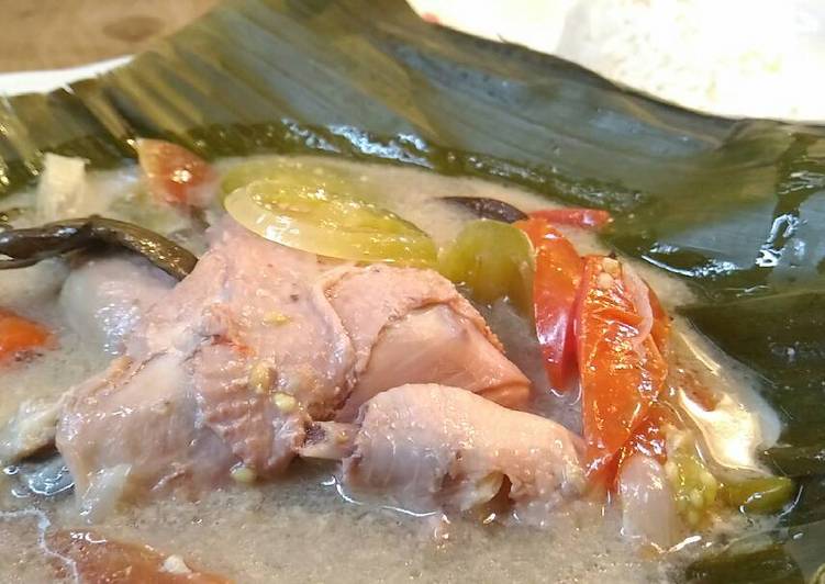 asem adalah lauk yang dimasak dengan cara dibungkus daun pisang dan dikukus